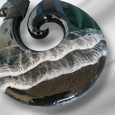 This Hook wall hanging has been handcrafted crafted from resin, Sand from Castlecliff Beach with a wood backing.