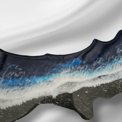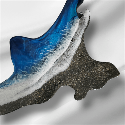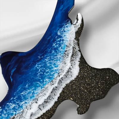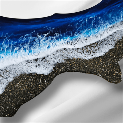 Blue Beach Scene New Zealand Wall Art. Sand encased into the resin from Hahei Beach