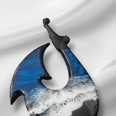 This Hook wall hanging has been handcrafted from resin with a wood backing. Sand from Castlecliff Beach encased into the bottom.