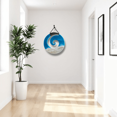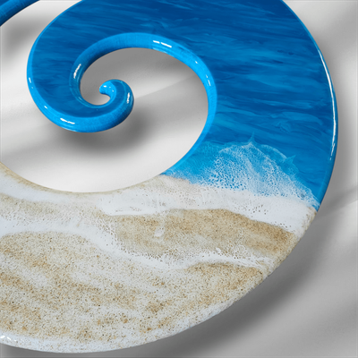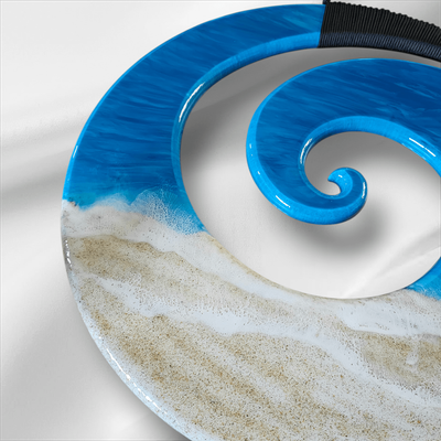 This XLarge Koru wall hanging has been handcrafted crafted from resin, Sand from Opito Bay with a wood backing.
